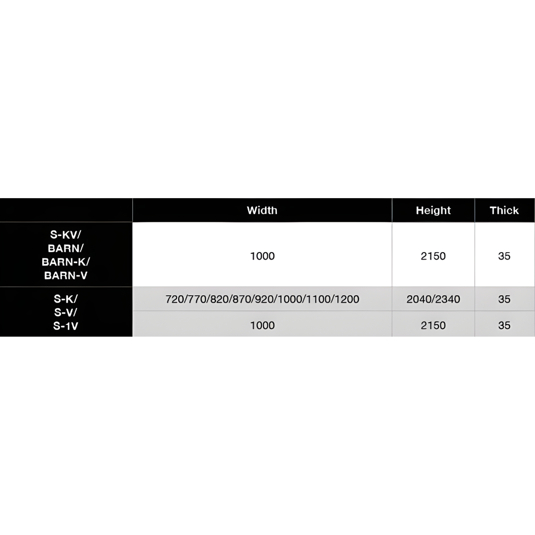 | CHOOSE SIZE | 1000X2150X35, 720X2040X35, 820X2040X35, 920X2040X35, 1200X2040X40 |