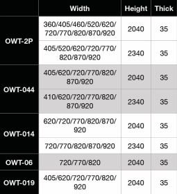 | Internal Maple Door Codes | OWT-014, OWT-019, OWT-044, OWT-06, OWT-2P |